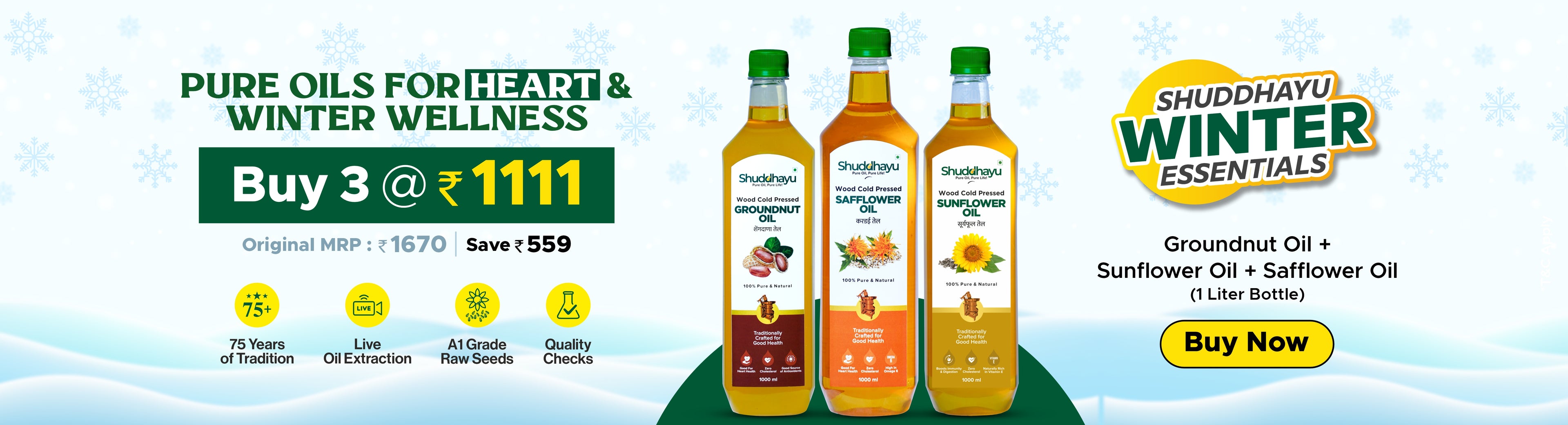 Cold Pressed Groundnut, Sesame (Til) & Sunflower Oil (1L Each) | Shuddhayu Cold Pressed Oils