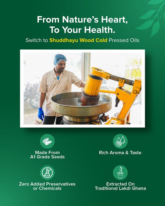 Experience the purity of traditionally wood-pressed oils from Shuddhayu, crafted for those who value natural nutrition and wellness.